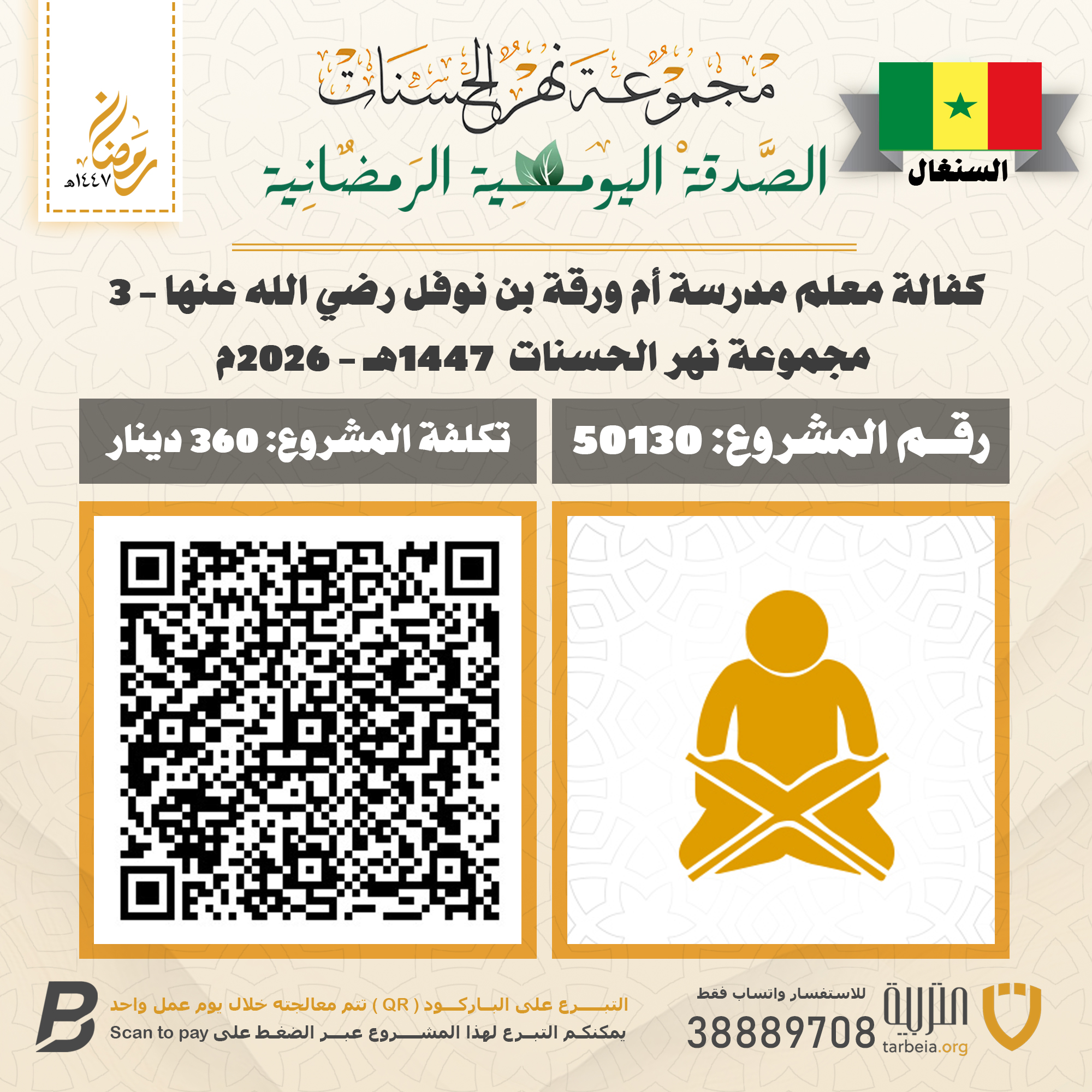 50130 - (3) كفالة معلم مدرسة أم ورقة بن نوفل رضي الله عنها / مجموعة نهر الحسنات 1447هـ - 2026م